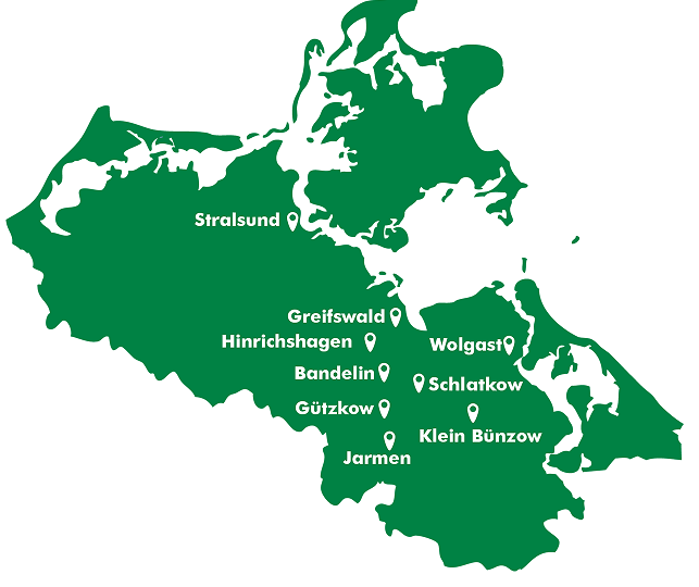 Greifswald, Stralsund, Gützkow, Hinrichshagen, Bandelin, Jarmen, Anklam, Schlatkow, Wolgast